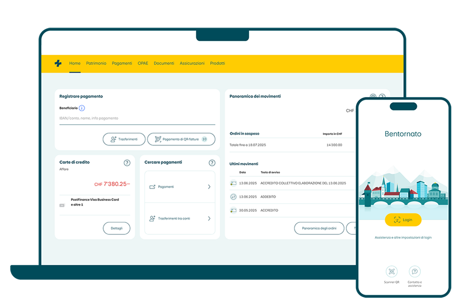 Tutto per il vostro banking quotidiano: con PostFinance combinate le vostre carte e i vostri conti nel modo più adatto alla vostra azienda. In e-finance e nella PostFinance App avete sempre sotto controllo le vostre finanze aziendali.