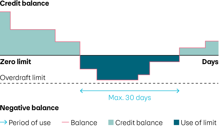 Once the check has been successfully completed, the agreement will be concluded and the overdraft limit on your business account will be suspended. Up to the defined limit, you may overdraw the business account for a maximum of 30 days in a row. The business account must have a positive balance after 30 days at the latest or once a month.