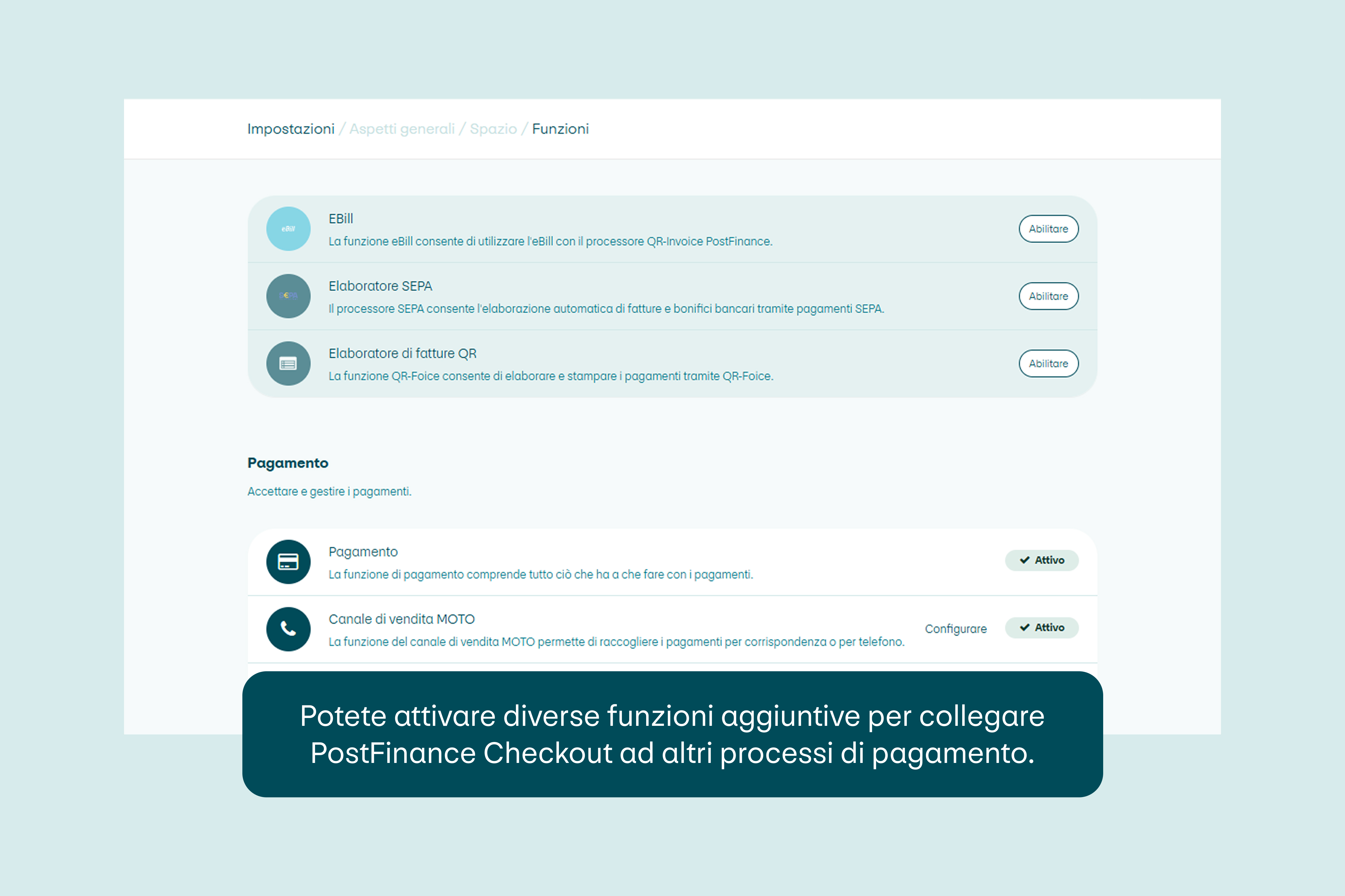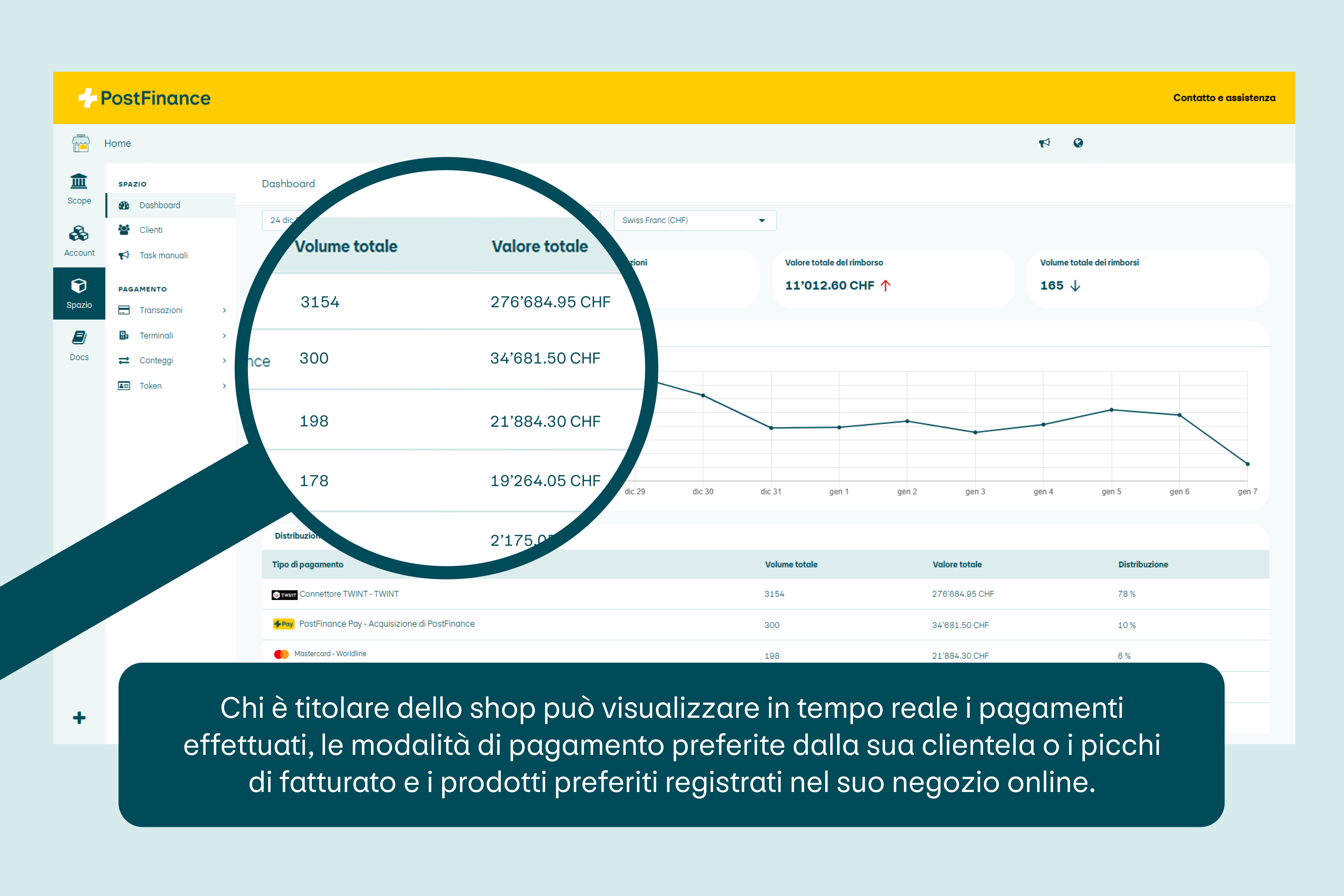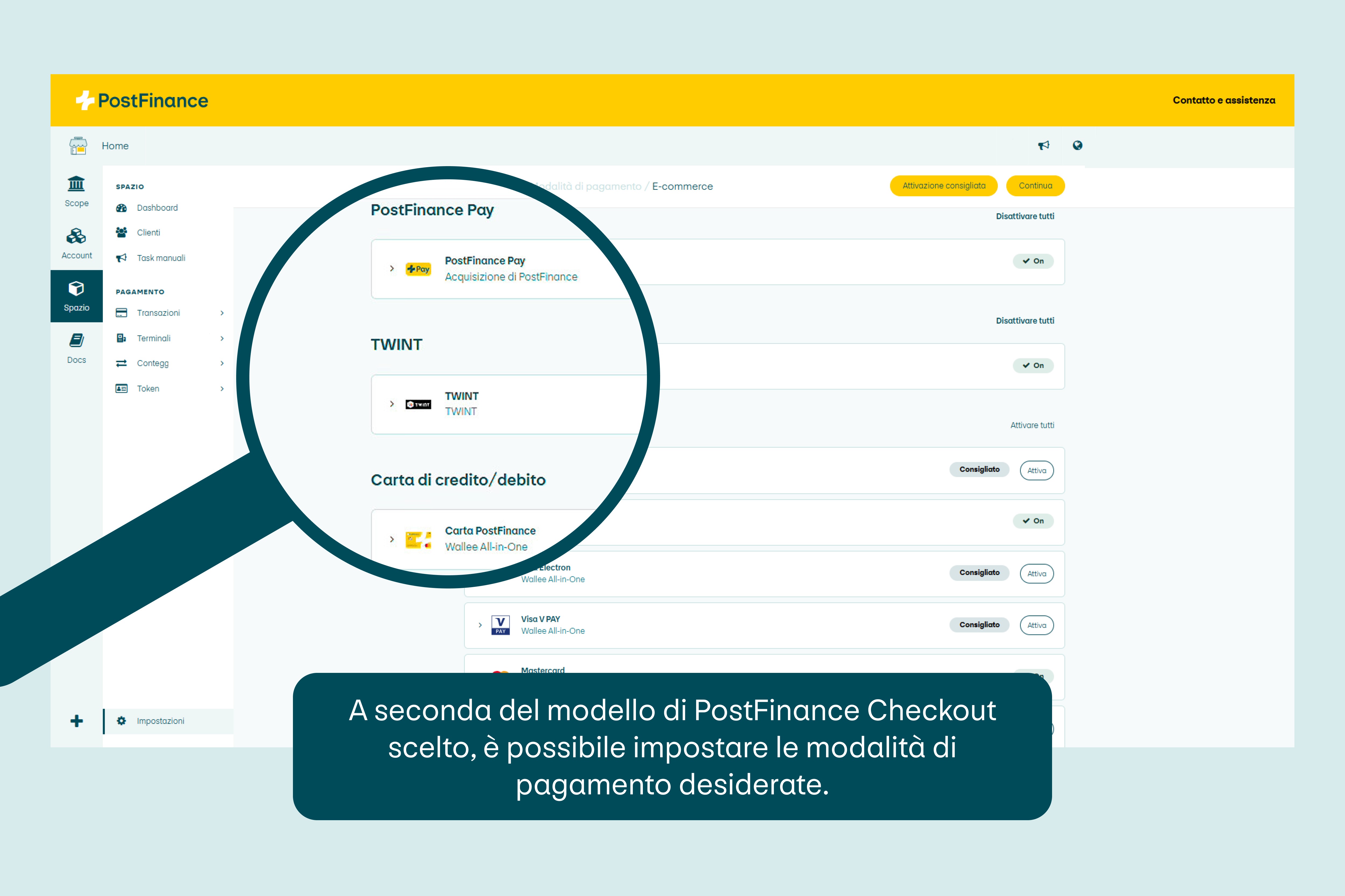 Per poter accettare i pagamenti nello shop online, i commercianti devono stipulare un contratto con un Payment Service Provider (PSP) come PostFinance. Successivamente definiscono quali modalità di pagamento intendono proporre alla clientela.